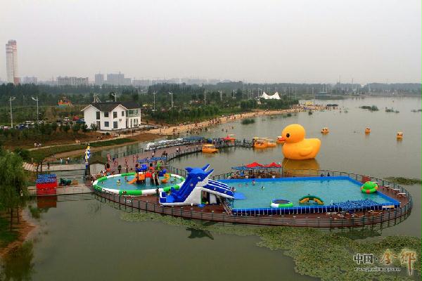 金水湖湿地风景区以“水生态和谐”为开题,以水域为天然依托,在不影响行洪和蓄水功能的前提下,因地制宜,严格遵循人与自然和谐相处的原则,不仅对河道进行了大力度地疏浚,清淤清障,防止水土流失,而且大量种植了各种树木花草,美化环境,扮靓景观,使整个景区绿化率达到96%,有效地改善了水体,净化了水质,水环境大为改善。